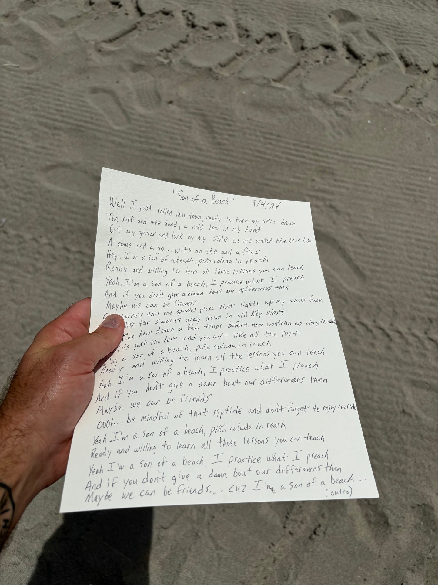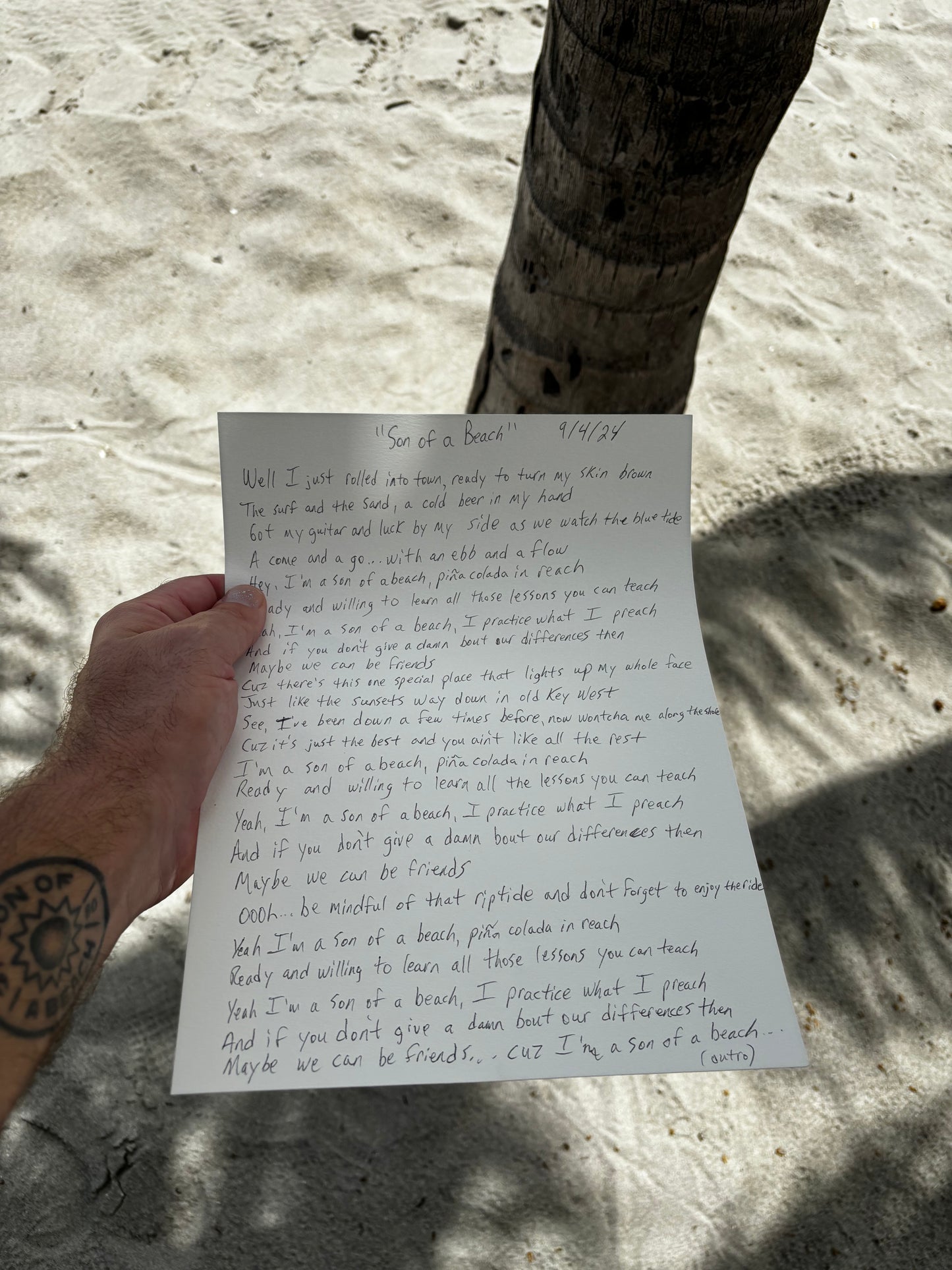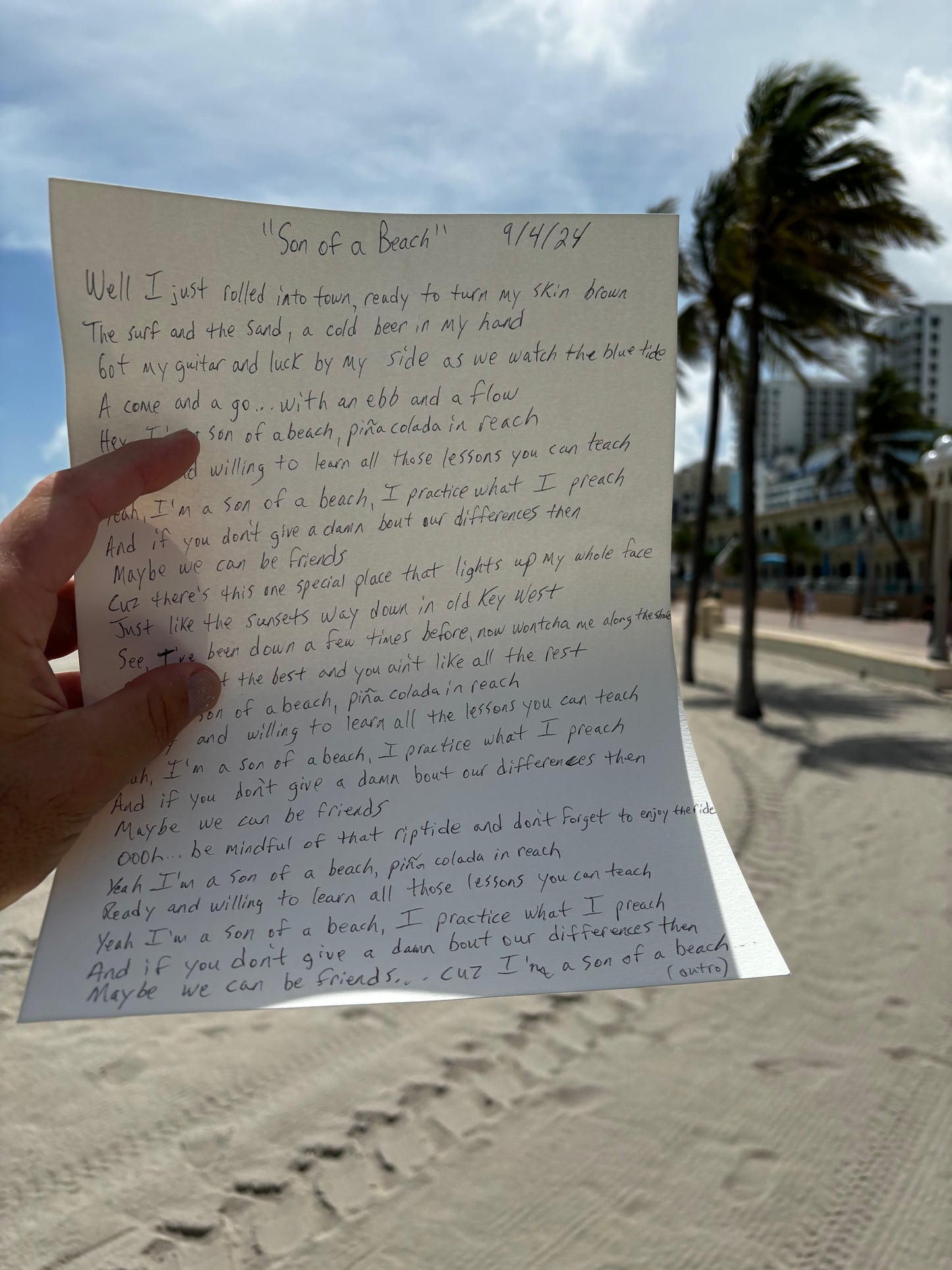 Limited edition lyrics. Hand-written on Hollywood Beach where the original was spawned in September 2023!
